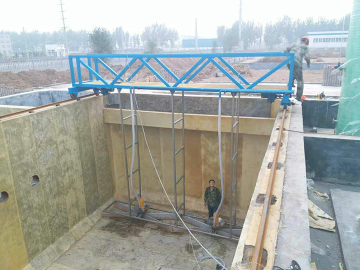 5、刮泥機采用雙速行走,效率高;并可設(shè)定不可刮集行程,適用范圍廣。